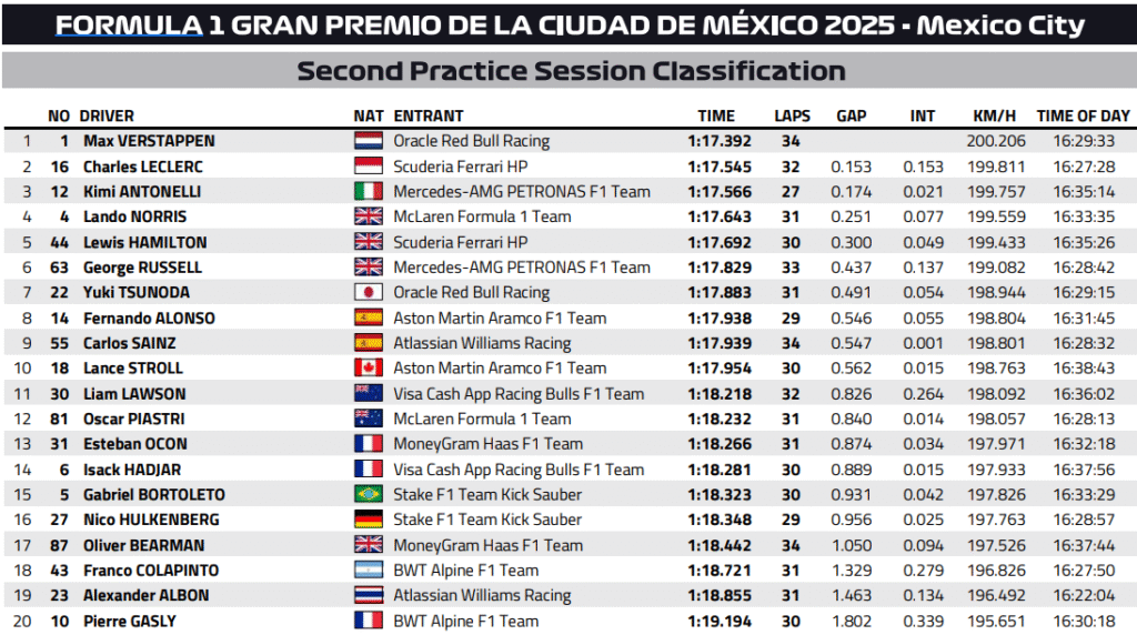 It is worth mentioning that early in FP2, McLaren reported misfire issues for Lando Norris, but he recovered well to finish fourth. Kimi Antonelli also encountered a brief technical issue, though it was quickly resolved. As grip levels improved, lap times shrank by nearly a second compared to the morning, showing how much the surface evolved.